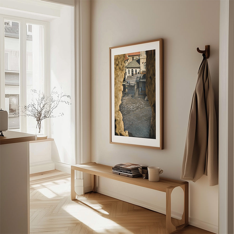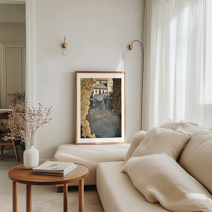 This Jerusalem wall art captures a timeless corner of the Old City, framed by ancient stone and morning quiet. A view from King David’s Tower that brings stillness, story, and a touch of Middle East wall decor into your space.