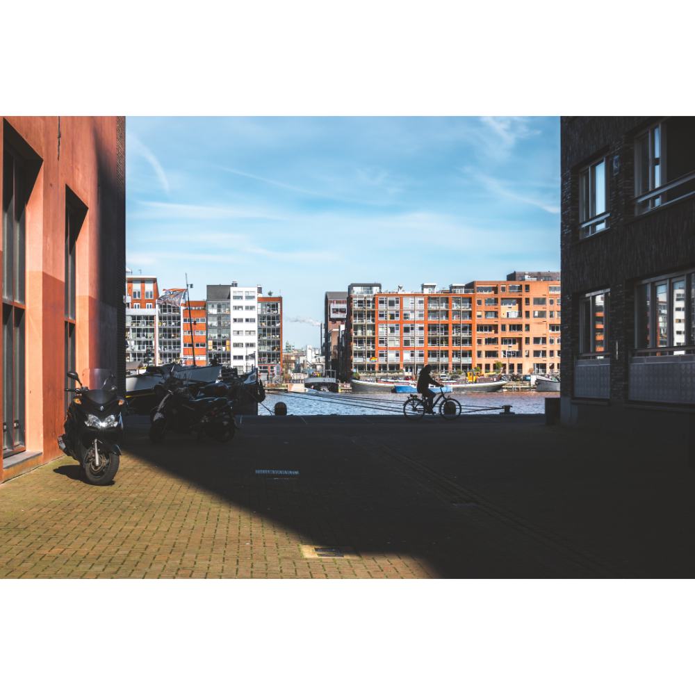This Ijhaven Amsterdam print brings you into the calm rhythm of the harbor, where bold architecture meets the slow ebb of the IJ river. It captures a sense of pause, a moment of reflection in the balance of water, shadow, and form. This fine art print reveals the quieter side of the city, offering a modern, contemplative take on Amsterdam’s maritime identity.